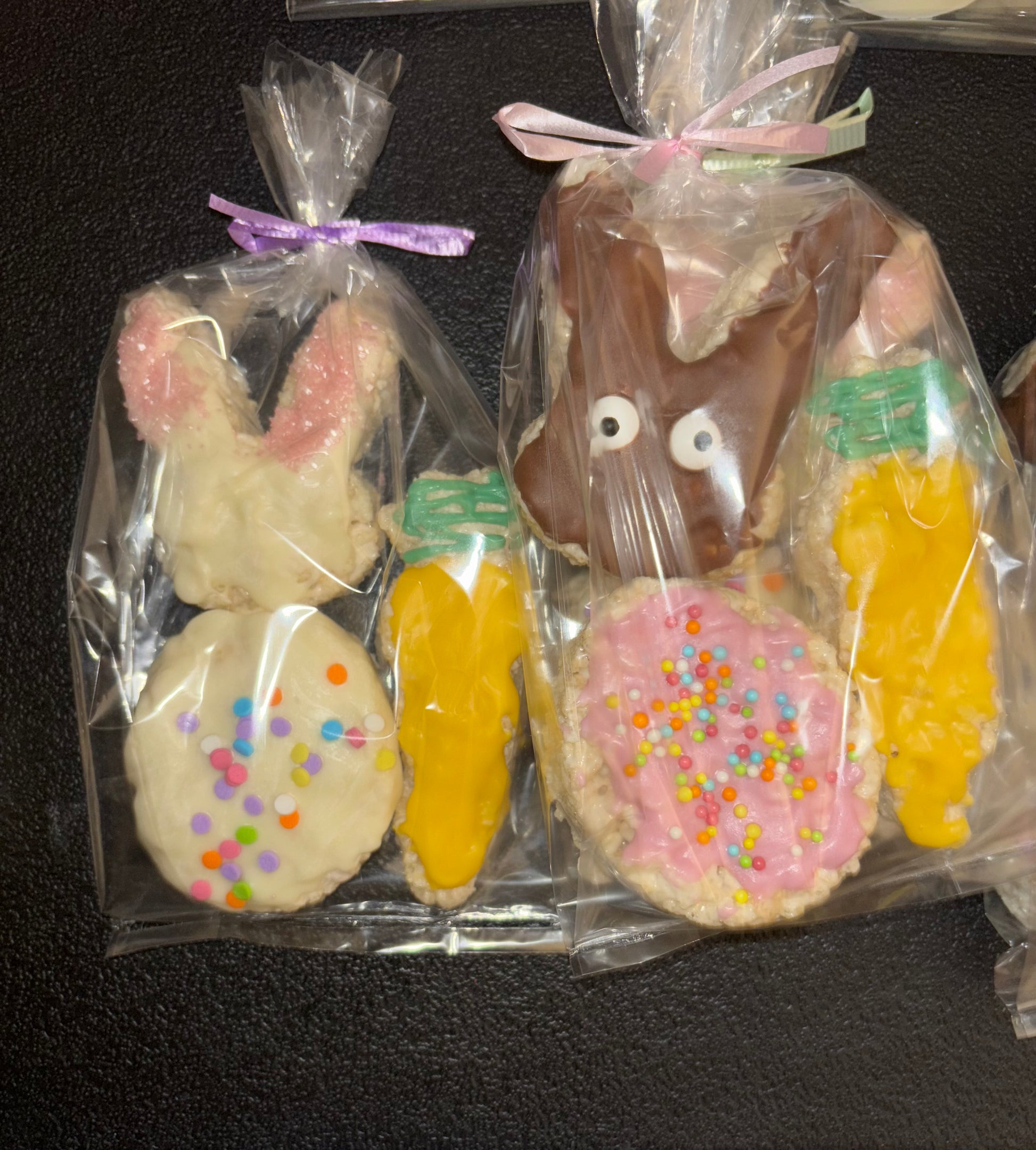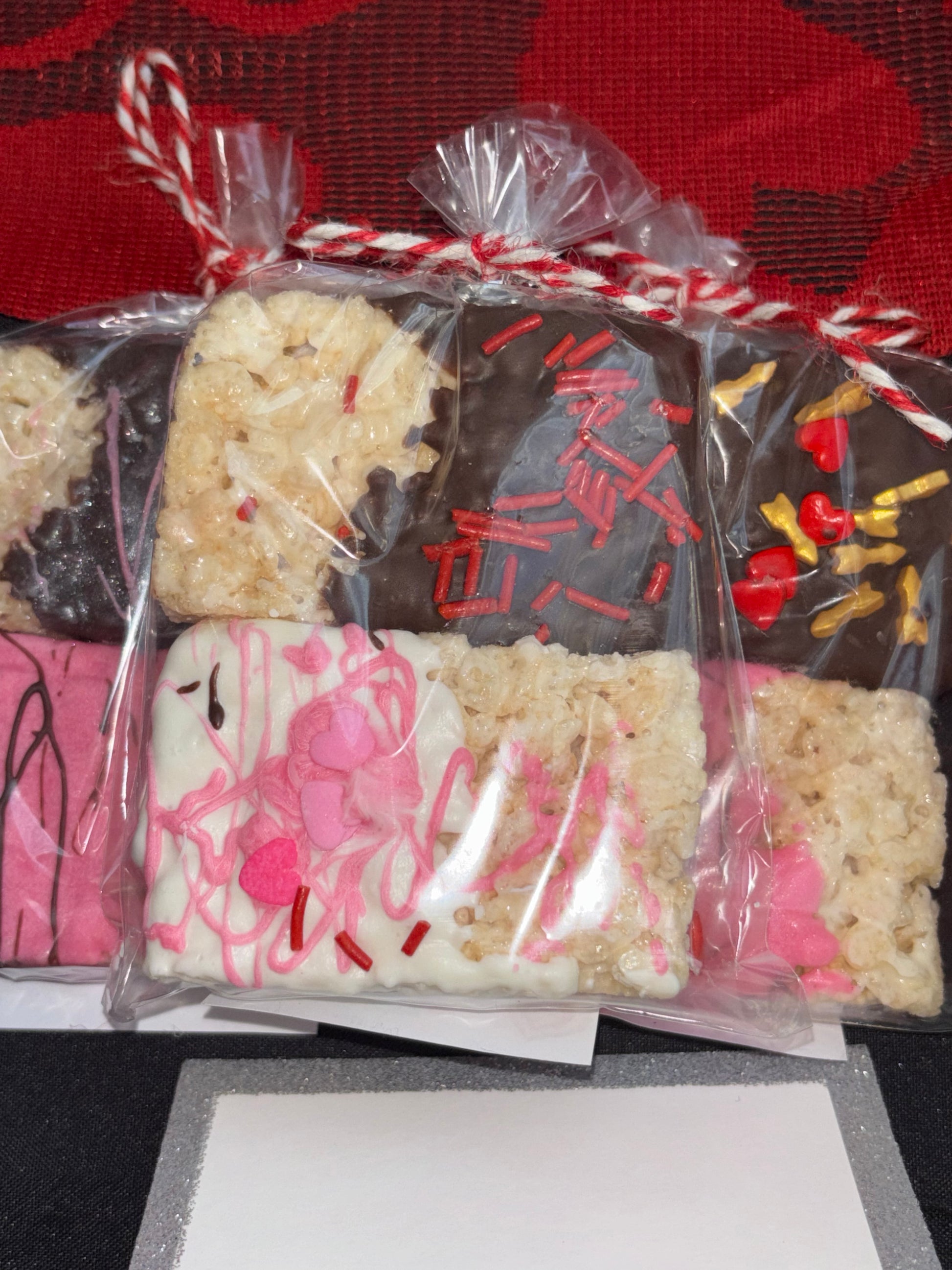 Homemade Rice Krispy treats dipped in chocolate and decorated. Available in 3, 6, or 12.