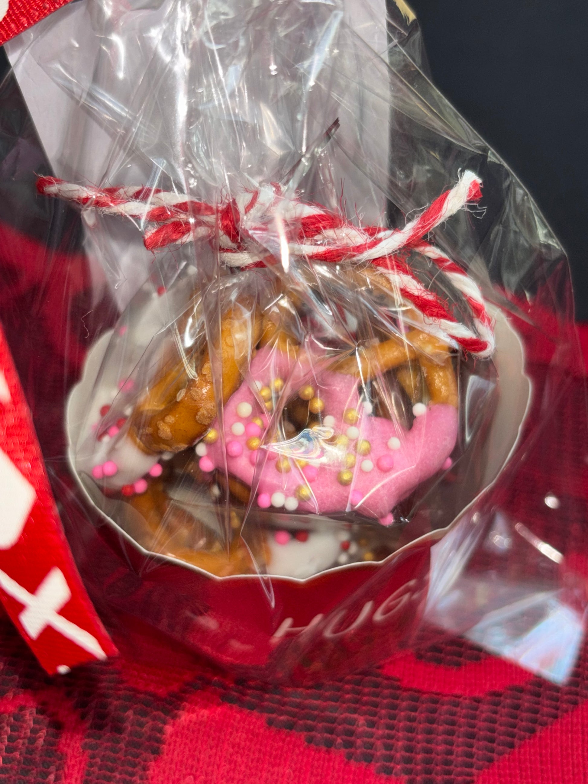 Small bowls filled with cookies, pretzels, cake or brownie bites.